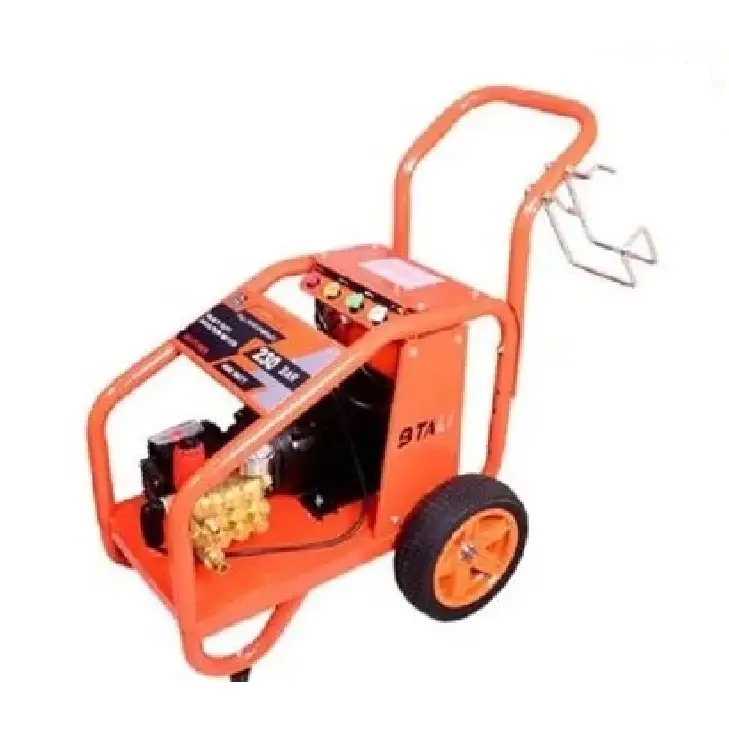 The BTali BT 2500 pressure washer is a robust electric model designed for demanding cleaning tasks. It features a 3 HP motor that delivers up to 2,500 PSI and a flow rate of 9 L/min. The axial pump comes with an adjustable pressure regulator for versatile cleaning. It includes a 10-meter high-pressure hose and a spray wand with various nozzles, plus a detergent injection system for efficient cleaning. Mounted on a sturdy frame with large wheels, it offers easy maneuverability. Ideal for both professional and home use, it excels at cleaning vehicles, machinery, and buildings.